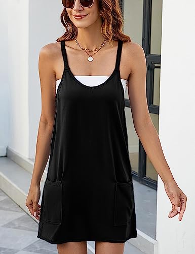 Women Sleeveless Athletic Dress Mini Dress Spaghetti Strap Sundress with Shorts 6
