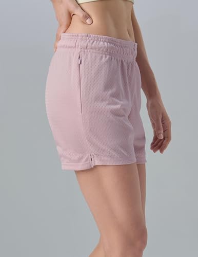 5-Pack Women's Athletic Shorts Mesh Basketball, Ladies Active Loose Pull-On Shorts with Zipper Pockets, 5" Inseam 4