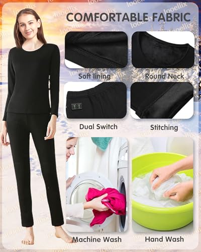 • COMFORTABLE FABRIC---Men women thermal baselayer set use of soft and breathable cotton fabric. Thermal underwear can be hand washed or machine washed, and the washing machine will not affect the heating system inside the heated clothes.When washing in the machine, place the clothes in a laundry bag