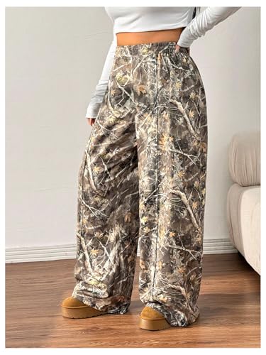 SOLY HUX Women's Plus Size Camo Pants High Waisted Wide Leg Casual Baggy Sweatpants Streewear 5