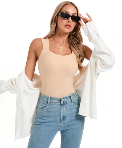 Womens U Neck Shapewear Built-in Bra Tank Top High Strechy Slim Fit Compression Camisole Workout Tops 4