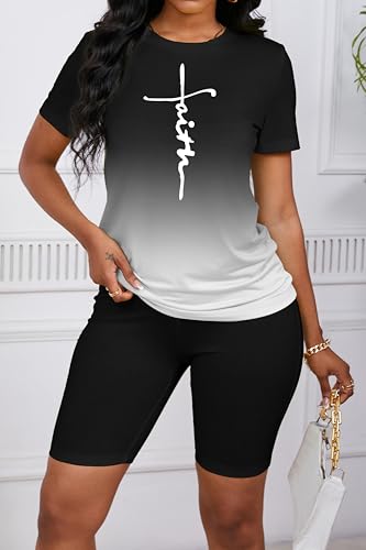 PINSV Women's 2 Piece Outfits Summer Printing Bodycon Short Pants Workout Sets 2