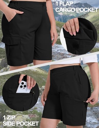 • Lightweight & Quick Dry Fabric: Our women's 9'' golf shorts crafted of lightweight, quick dry and breathable fabric, which helps to wick moisture away from your skin to keep dry all day. Four-way stretch and durable features enhance for outdoors
