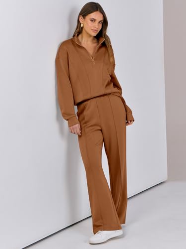 Caracilia 2 Piece Outfits for Women Fall Sweatsuits Oversized Half Zip Sweatshirt Sweatpant Matching Lounge Sets Tracksuit 2