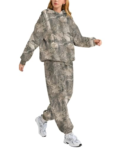 • Eye-Catching Camo Design: The camo sweat sets for women feature a oversized camo hoodie and sweatpants women. Maple leaf print sweatshirt design with drop shoulder and loose fit, elastic waistband sweatpants with side pockets ensuring ease of movement