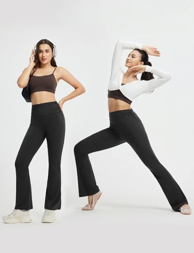 baleaf Womens Flare Yoga Pants Fold Over Flared Leggings with Pockets Tummy Control Bootcut Pants 7
