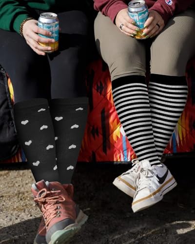 • Size & Material: Crafted with premium polyester and rubber, these Black Purple Big Hearts compression socks offer a fit and durable flat-bottom construction. Designed for women, with jacquard weave, they provide 15-20 mmHg compression for optimal support. Easy to care for machine wash & hand wash and built to last