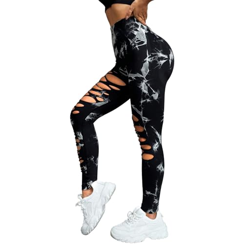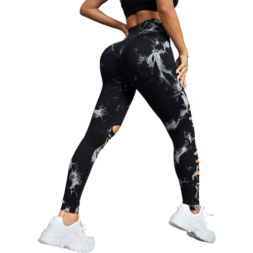 UONNOU Women's Tie Dye Cutout Tights High Waist Workout Yoga Leggings,Scrunch Butt Lifting Elastic Pants,2 Pack 6