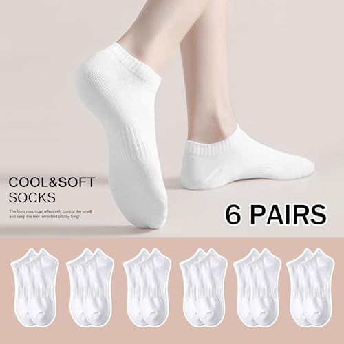 DOKUTOKU 6-Pairs Womens Ankle Socks Size 9-11 Thick Cotton White No Show Invisible Socks 4