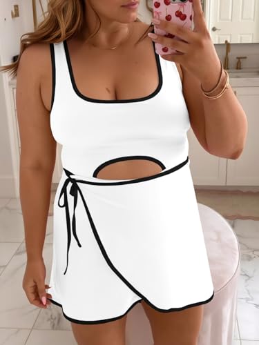 • Features: This fashion active dress is equipped with sleeveless, square collar, cutout, wrap, tie waist, backless, contrasting color, a line flared, slim fit, mini length, built-in bra, shorts, pockets, perfectly combining practicality and comfort