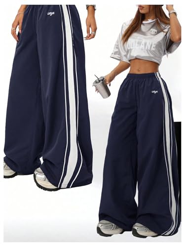 More information about SOLY HUX Women's Baggy Sweatpants Casual Sports Wide Leg Parachute Hip Hop Pants Streetwear
