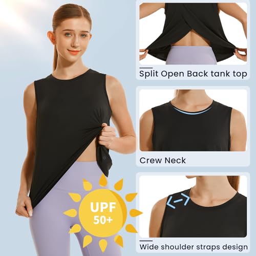HODOSPORTS Workout Tops for Women UPF 50+ Open Back Sleeveless Tank Tops Quick Dry Athletic Gym Yoga Shirts Loose Fit 3