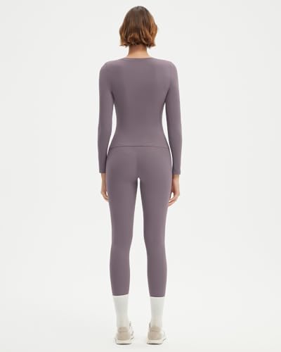 SUUKSESS Women 2 Piece Workout Set Tummy Control Legging Long Sleeve Workout Top 6