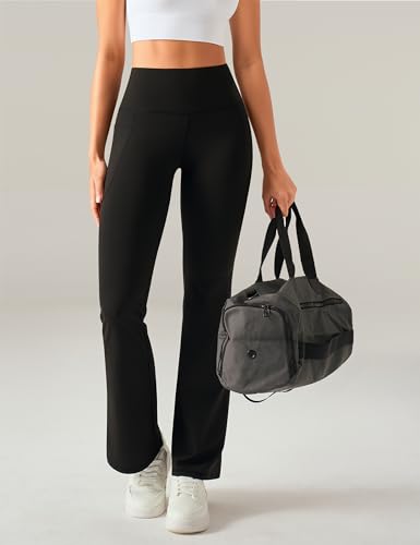 OLCHEE Womens Yoga Pants Flare Leggings with Pockets High Waist Tummy Control Workout Bell Bottom Bootcut 1