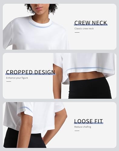 • Stretch & Super Soft: Made from high-grade fabric, our womens workout crop T-shirt is super soft, 4-way stretch, skin-friendly, and lightweight while also being breathable.