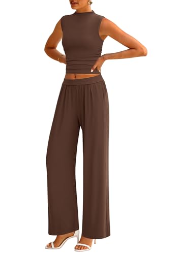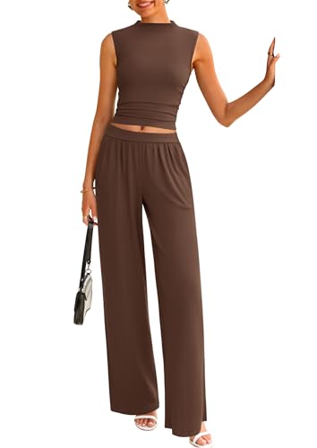 • TRENDY FEATURES: Women Matching Set Includes Wide Leg Pants Are Tailored with Elastic Waistband and Two Side Pockets for A Comfortable Fit. Sleeveless Crop Top with Mock Neck and Ruched Detailing Provides A Flattering Silhouette for Various Body Shapes