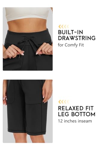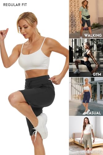 Women's Long Shorts 12" Knee Length Running Athletic High Waist Deep Pockets Quick Dry Loose Fit 3
