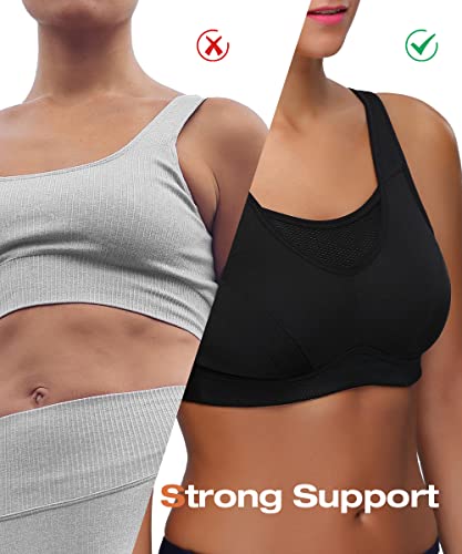 Wingslove Women's High Impact Sports Bra Full Coverage Wirefree Non Padded Workout Bra Plus Size 3