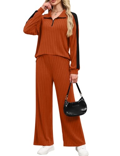 More information about JUSTFASHIONNOW Womens 2 Piece Outfits Ribbed Knit Lounge Sets Cozy Half Zip Sweatsuit Sets Wide Leg Jogger Tracksuits
