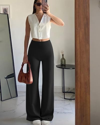 MOOSLOVER Women's High Waisted Wide Leg Yoga Pants, Comfy Stretchy Loose Pants, Black, S, M, L, XL 6