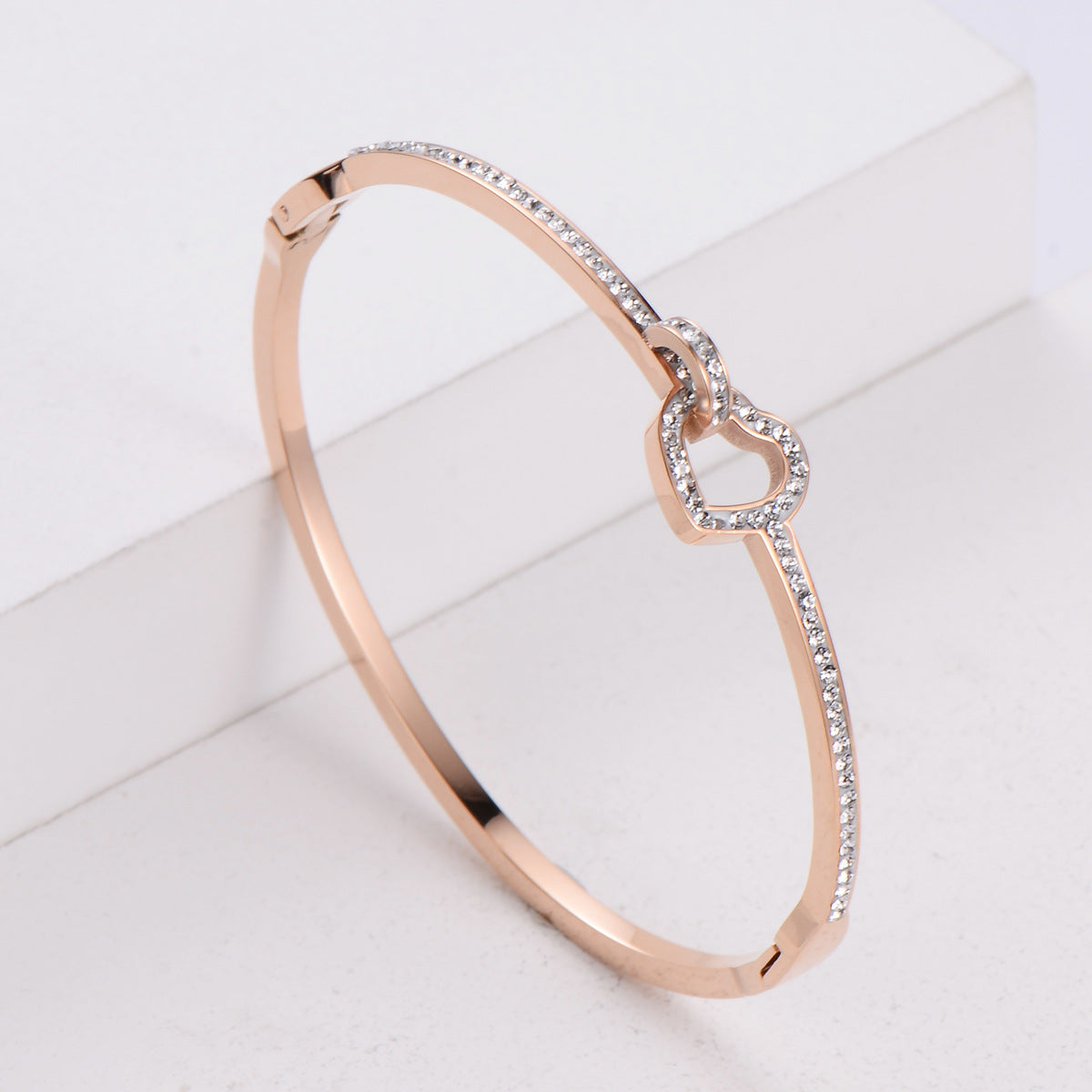 Fashion Women Diamond Heart Titanium Steel Polishing Bangles 1