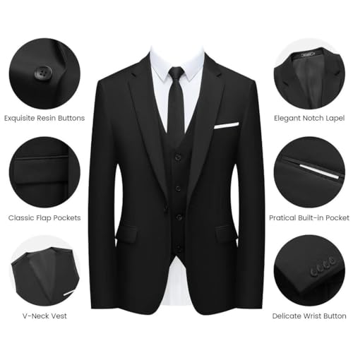 More information about Men's 3 Piece Formal Suit Slim Fit Blazer Vest and Pants Classic Business Wedding Groom Tuxedo Coffee