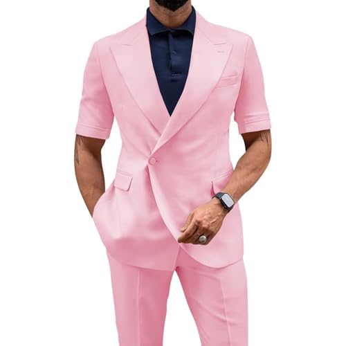 Mens Suit 2 Piece Short Sleeve Suits for Men Slim Fit Casual Suit Jacket Pant Set Summer Business Prom Wedding Suits 2