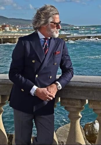• 【Features】- Men's Blazer Jacket Slim Fit Double Breasted Gold Buttons Sport Coat Formal Wedding Prom