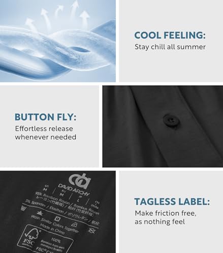 • SUPERIOR BREATHABLE & MOISTURE WICKING: The porous and hollow fiber structure of the rayon made from bamboo makes the boxer shorts naturally breathable, sweat wicking, cool and fresh to wear.