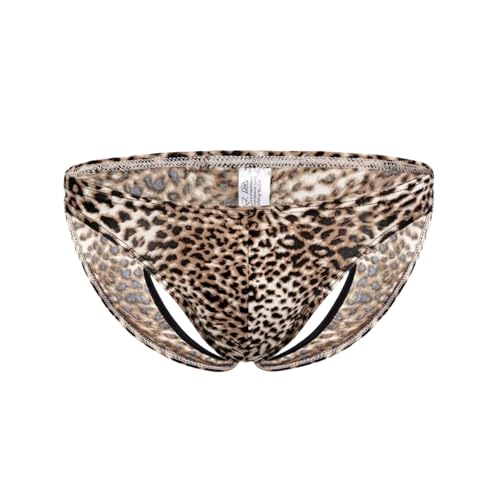 HOT ! Men's Sexy Leopard Print Jockstrap Underwear - Low Rise G-String Thong with Bulge Pouch and Open Back