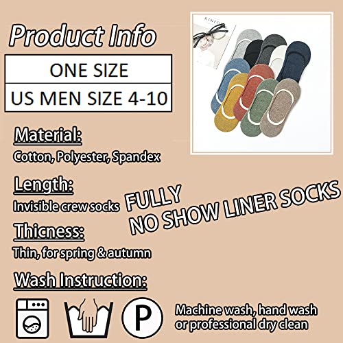 CHUNFO No Show Liner Men Footie Socks Non Slip Grips Multicolor Cushioned Pure Color Invisible Low Cut Boys 5 or 10 Pairs 4