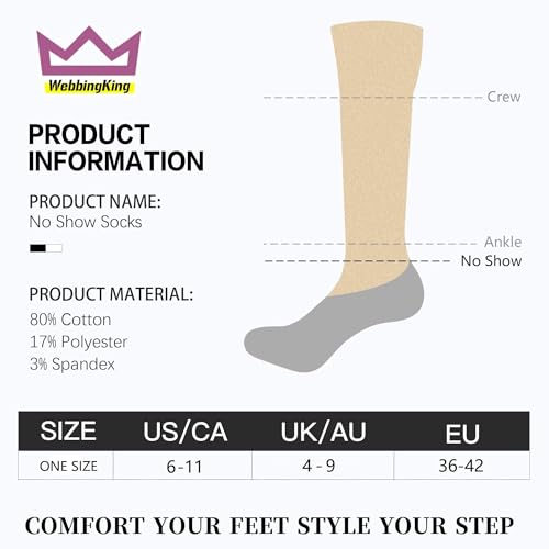 • Perfect Fit - WebbingKing Unisex no-show socks are available in one sizes: Shoe Size 6-11. Whether you're running, walking,or daily casual going, our socks deliver comfort and performance for every activity.