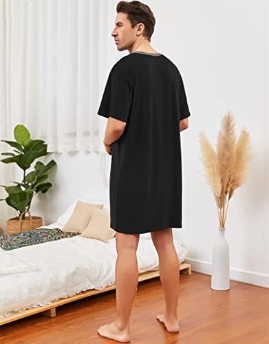 Men Summer Short Sleeve Nightshirt Knee Length Nightgown Cotton Sleep Shirt Lounge Wear with Chest Pocket 3
