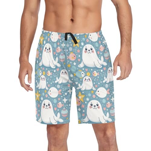 senya Cute Seal Mens Pajama Shorts Soft Pants Lounge Sleepwear Bottoms with Drawstring & Pockets 1