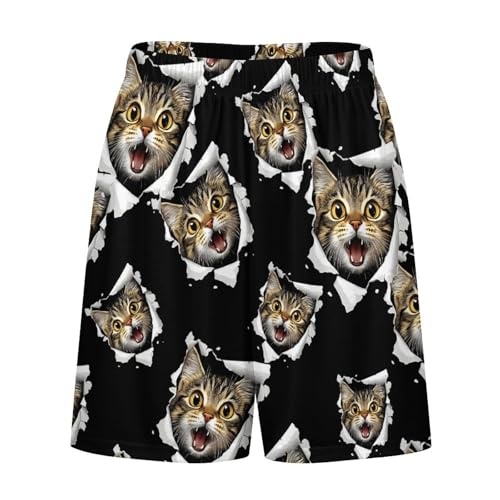 HOT ! Cat Torn Paper Men's Pajama Bottoms Lounge Pj Shorts Stretch Sleep Shorts for Home Vacation Beach