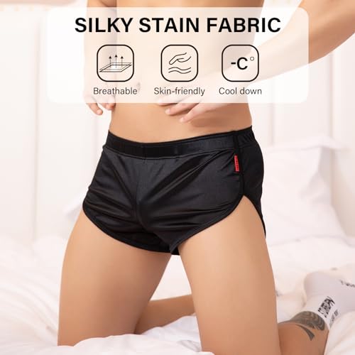 • Features: Satin boxers for men are smooth and silky, they won't wrinkle and pilling easily. Mens silk boxers are lightweight and thin fabrics, making sleep more restful. Satin boxer briefs with pouch, keep you relaxed all day.