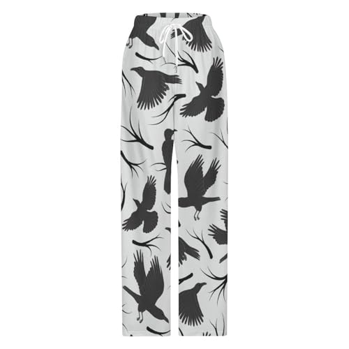 MoBlinko Mens Pajama Pants Women Halloween Black Ravens Pj Pants Women's Pajama Bottoms 6