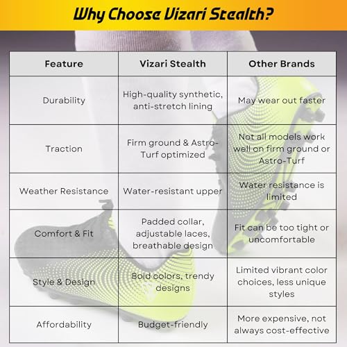 More information about Vizari Stealth Firm Ground Soccer Cleats for Men & Women | Black Adult Football Shoes with Rubber Studs and Durable Synthetic Upper, Size - 6.5-13 (Unisex)