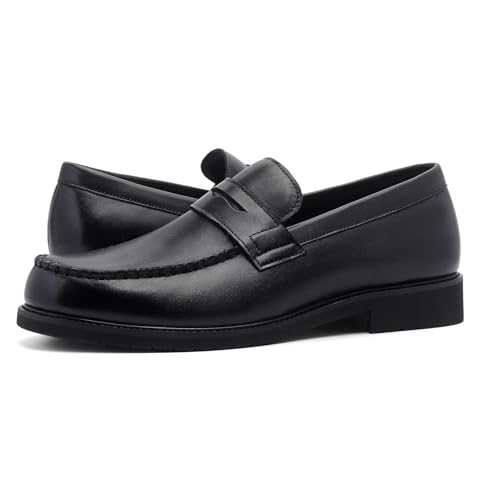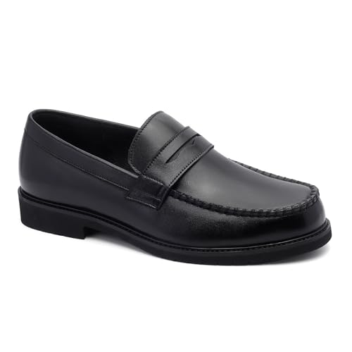 Comfort Penny Loafers for Men – Leather Slip-On Shoes with Orthotic-Friendly Insole and Flexible Outsole for Work & Daily Wear Black 6