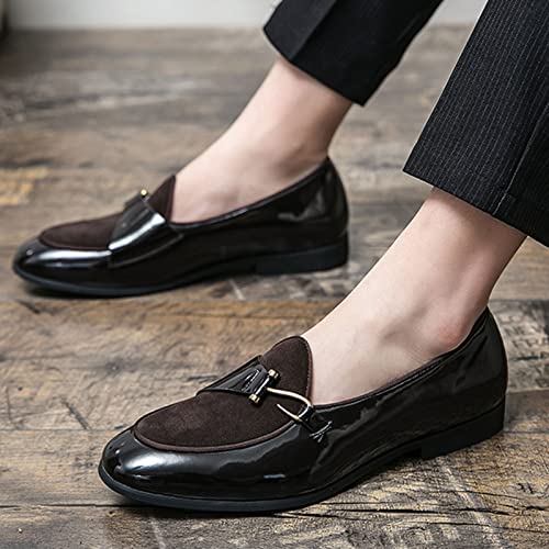 Men's Pointed-Toe Tuxedo Dress Shoes,Fashion Patent Leather Splicing Suede Casual Business Derby Oxford Slip-on Loafer 5