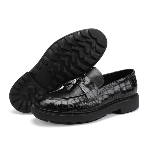 Men's Luxury Tassel Leather Dress Shoes, Classic Casual Tassel Business Penny Loafer Party Shoes Wedding Loafers for Mens 6