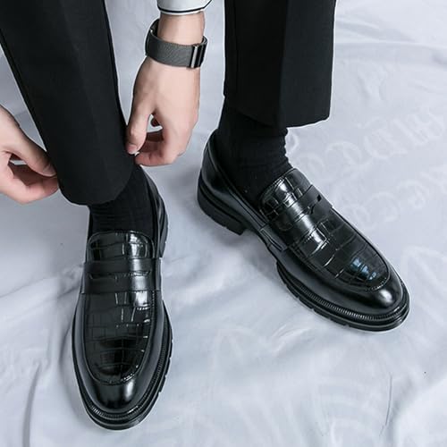 Men's Leather Printed Chunky Platform Penny Loafers Luxury Round Toe Slip-On Lug Sole Office Business Dress Shoes Daily Non-Slip Low Block Heel Casual Shoes 7