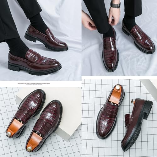 Men's Leather Printed Chunky Platform Penny Loafers Luxury Round Toe Slip-On Lug Sole Office Business Dress Shoes Daily Non-Slip Low Block Heel Casual Shoes 6