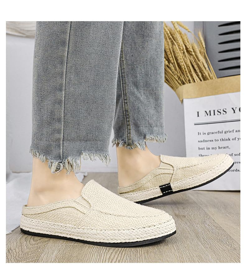 Men's Canvas Linen Flat Mules Comfy Clog Slippers Closed Toe Breathable Slip on Loafers Non-Slip Casual Shoes 5