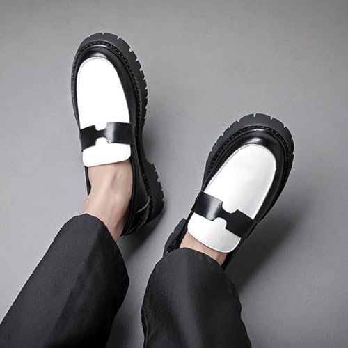 HOT ! Men's Platform Penny Loafers Leather Slip-On Shoes with Lug Sole Non-Slip Business Formal Dress Shoes for Wedding Office Work