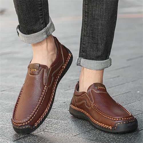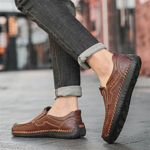 Men's Handmade Leather Slip On Flat Loafers Lightweight Soft Round Toe Non-Slip Moccasin Boat Walking Shoes for Driving Casual Business Office Work 6