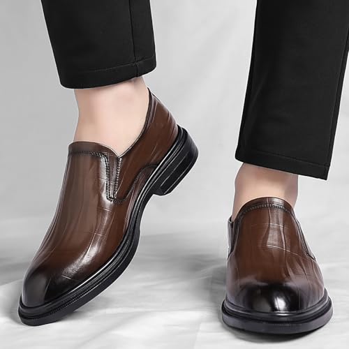 Business Formal Loafers for Men's Leather Printing Low Heel Slip On Dress Penny Loafers Classic Casual Pointed Toe Wedding Daily Tuxedo Shoes 7