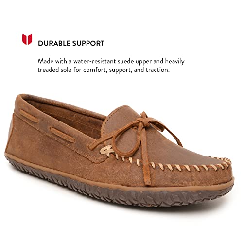 More information about Minnetonka Men's Tread - Suede Moccasin for Men - Water-Resistant Indoor Outdoor Slippers with MinnTREAD Rubber Sole