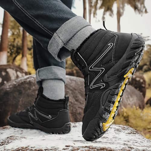 Mens Womens Winter Hiking Boots Wide Toe Box Warm Snow Boots Minimalist Barefoot Boots Zero Drop Sole Waterproof Non-Slip Ankle Booties 5