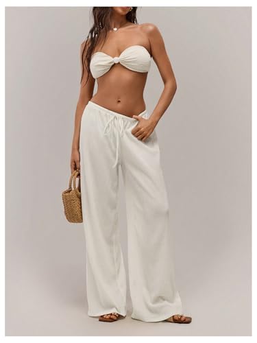 HOT ! Floerns Women's Low Waist Drawstring Long Pants Wide Leg Casual Loose Trousers